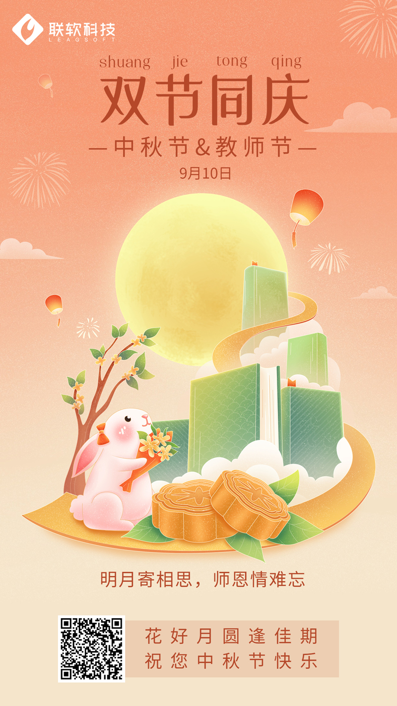 今年的中秋在9月10號,當(dāng)日也是教師節(jié),花好月圓,雙節(jié)同慶!值此中秋佳節(jié)來臨之際,聯(lián)軟科技祝您中秋節(jié)快樂!身體安康,萬事如意,闔家幸福,前程似錦!