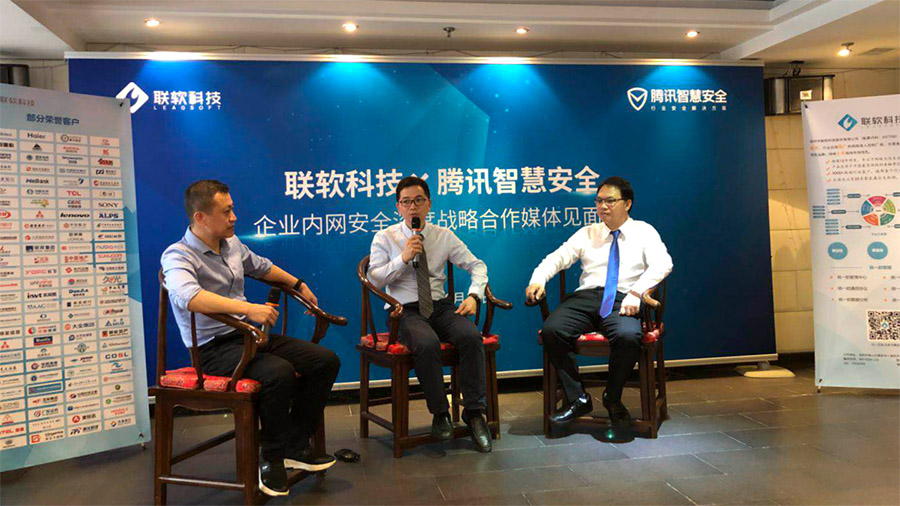2018年9月13日,聯(lián)軟科技攜手騰訊智慧安全在北京召開媒體見面會,在網(wǎng)絡(luò)安全與信息化、申耀科技觀察、中華網(wǎng)、中國報道、中國產(chǎn)經(jīng)新聞、參考消息、鈦媒體、企業(yè)網(wǎng)、安全牛、doit等30多家媒體的共同見證下,正式宣布雙方成為深度戰(zhàn)略合作伙伴,并共同發(fā)布企業(yè)內(nèi)網(wǎng)安全管控解決方案,將雙方的產(chǎn)品深度整合,為銀行保險、證券、運營商、交通物流、能源、制造、零售等行業(yè)客提供統(tǒng)一管控的平臺級解決方案。