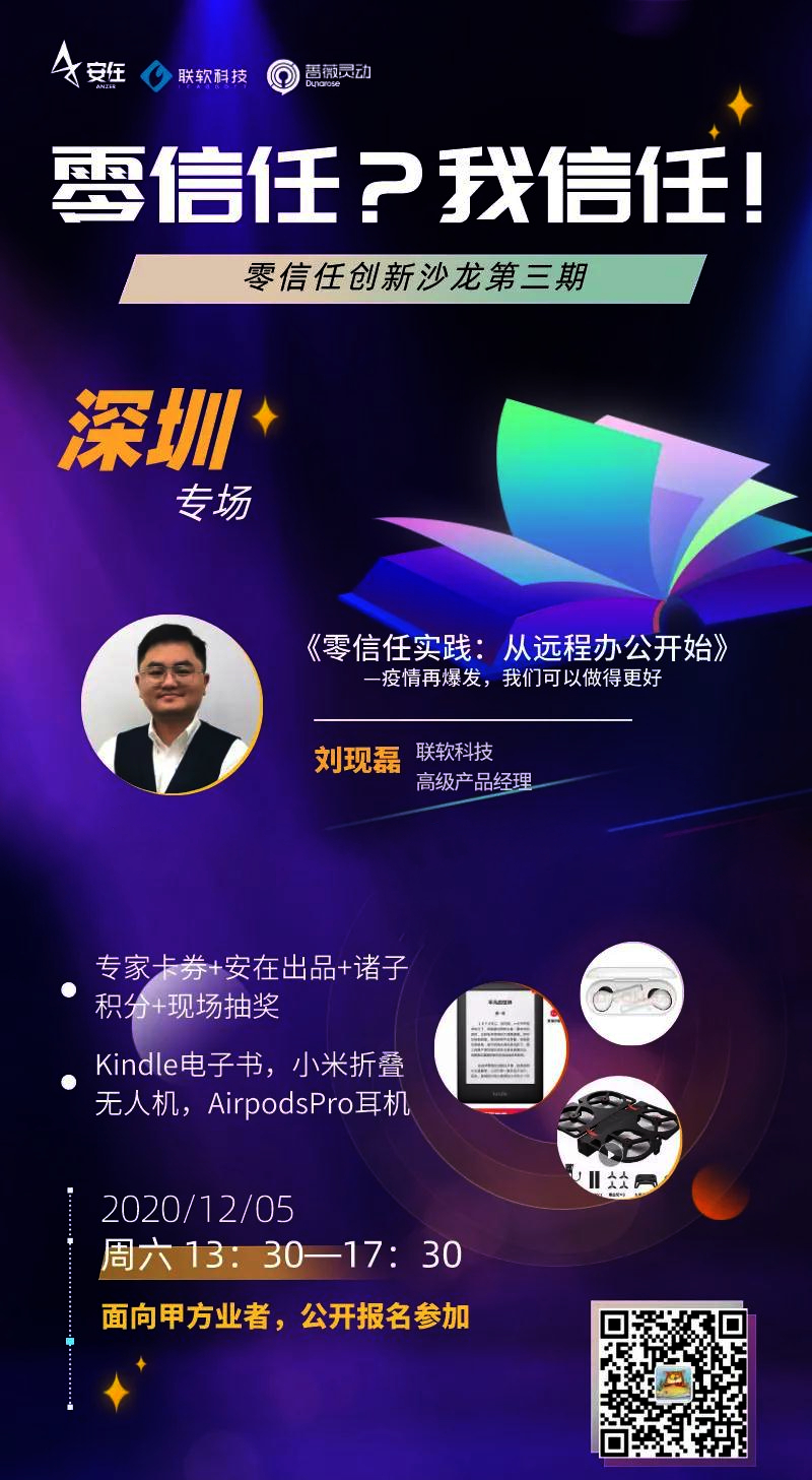 在年初整個(gè)大環(huán)境略顯衰頹的當(dāng)下,網(wǎng)絡(luò)安全行業(yè)逆勢飛揚(yáng),聯(lián)軟科技的零信任方案在疫情期間得到進(jìn)一步成功落地實(shí)踐,助力了多家客戶復(fù)工復(fù)產(chǎn)。在面對(duì)疫情再次來襲的壓力下,我們可以做的更好!掃碼報(bào)名,12月5日,聯(lián)軟分享,給你答疑解惑!