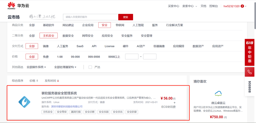 聯(lián)軟UniCWPP和UniCSM兩款產(chǎn)品在華為云云市場(chǎng)具體位置如下圖所示: