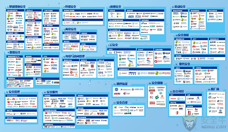 該網(wǎng)絡(luò)安全行業(yè)全景圖把國內(nèi)的安全領(lǐng)域分為15個大類和50多個細(xì)分領(lǐng)域,從500家安全企業(yè)中篩選出150家候選企業(yè),并對其產(chǎn)品的各方面進行專業(yè)的審核、打分與評比,公正公平的呈現(xiàn)中國網(wǎng)絡(luò)安全市場全景與動態(tài),IT人可以通過該圖更好的了解和選擇專業(yè)安全廠商和其產(chǎn)品。