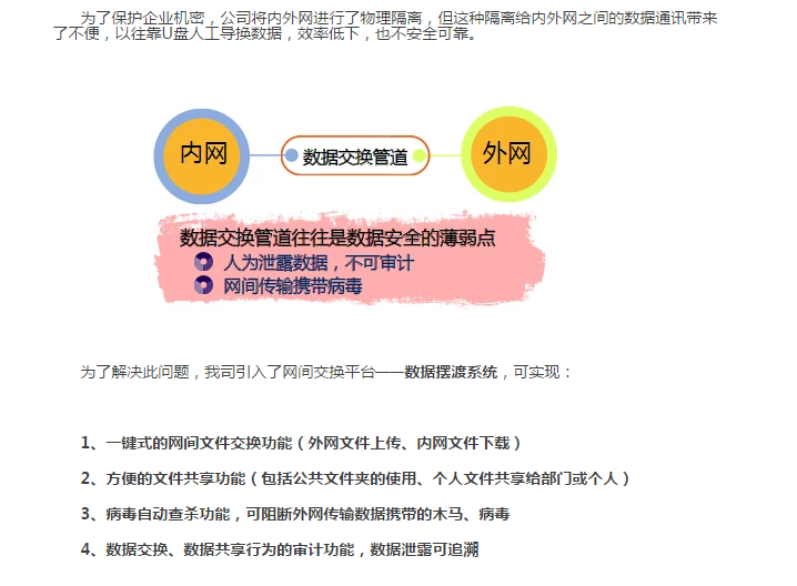與傳統(tǒng)解決方案相比,安全數(shù)據(jù)擺渡系統(tǒng)UniNXG具有更安全、更高效兩大功能特性。