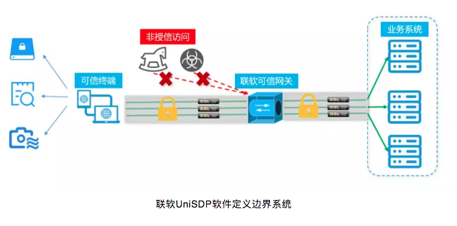聯(lián)軟科技依托零信任安全架構(gòu),通過公司在企業(yè)安全領(lǐng)域的創(chuàng)新技術(shù)賦能,發(fā)布了面向未來、安全有效的新一代安全訪問控制系統(tǒng)--聯(lián)軟UniSDP軟件定義邊界系統(tǒng),通過以身份為核心的動態(tài)自適應(yīng)訪問控制策略模型,使企業(yè)的安全邊界從防火墻等物理邊界升級為圍繞終端和用戶的柔性邊界,保障企業(yè)遠(yuǎn)程辦公的安全。