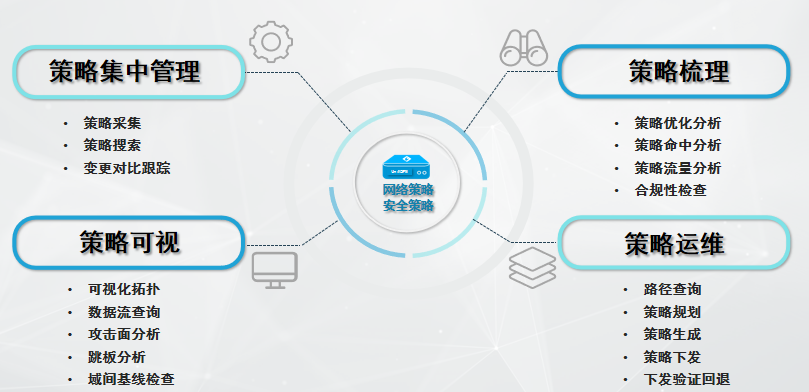 聯(lián)軟至賽網(wǎng)絡(luò)安全策略管理系統(tǒng)能夠對企業(yè)內(nèi)所涉及到的網(wǎng)絡(luò)設(shè)備及安全設(shè)備的策略進(jìn)行全面的梳理和優(yōu)化,及時(shí)發(fā)現(xiàn)網(wǎng)絡(luò)策略的各類異常并通知維護(hù)人員,以保證網(wǎng)絡(luò)以最優(yōu)狀態(tài)運(yùn)行,提升網(wǎng)絡(luò)用戶的感知。